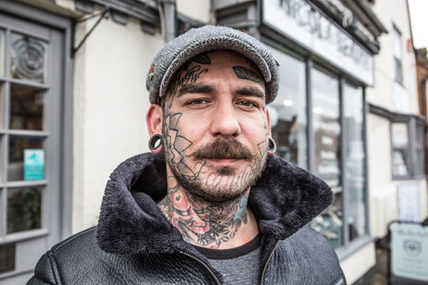 ‘My life motto is IDWIW (I do what I want)…..it is tattooed above my right eyebrow!! I’ve been scaffolding since I was 15 and now I’m 29 so it’s been a while. I don’t really care what people think about the way I look, I do it for myself and no one else. My fiancée and I aren’t the most conventional looking couple but we take so much pride in having the most amazing, polite kids that we know have been brought up the right way and the way we look hasn’t depicted that!!
